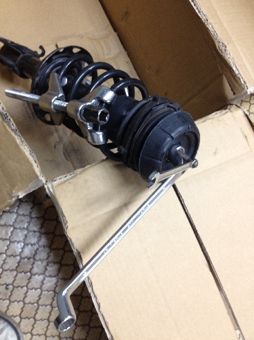 このストラット、ブレーキのホースは外す必要がなく、スタビ・リンクとABSのセンサーを外すだけなので、交換は容易。